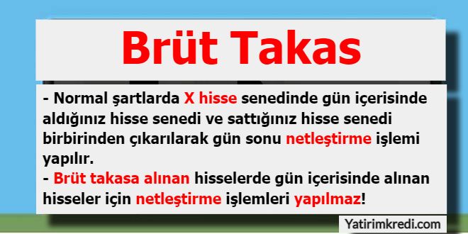 - Brüt Takas’a giren hisseyi almak için kredili işlem limitinizi kullanamazsınız.