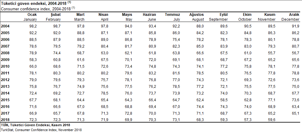 - Ekonomik Güven Endeksi. TÜİK. [Çevrimiçi] [Alıntı Tarihi: CUMA KASIM 2018.] http://www.tuik.gov.tr.